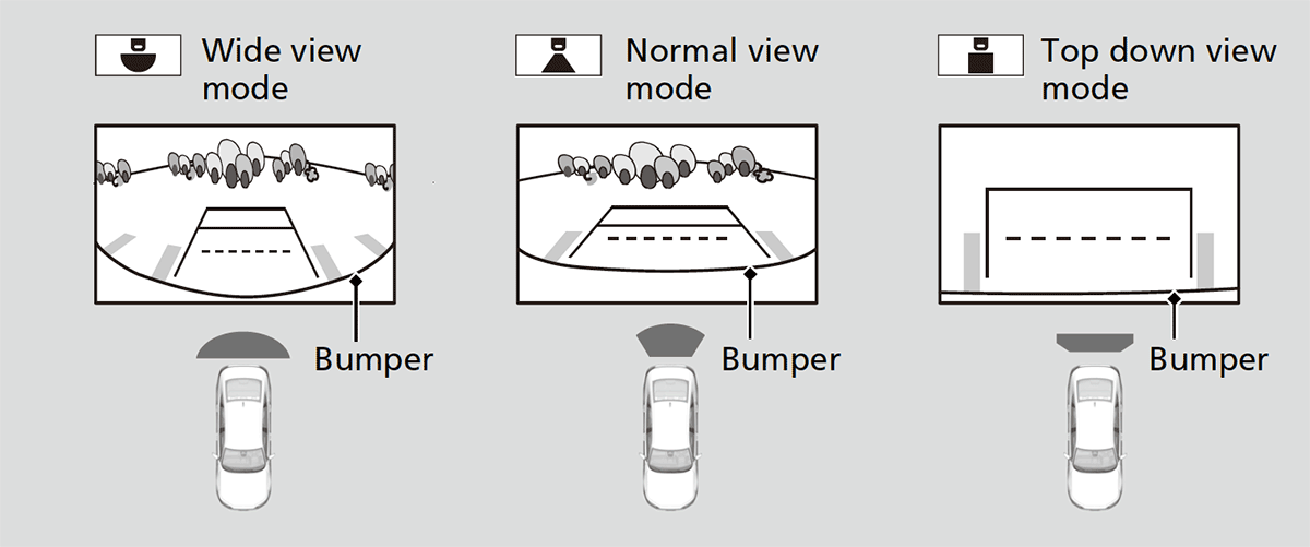 • If you were last using Wide view mode or Normal view mode, the same view mode will be activated the next time you put the transmission into R.