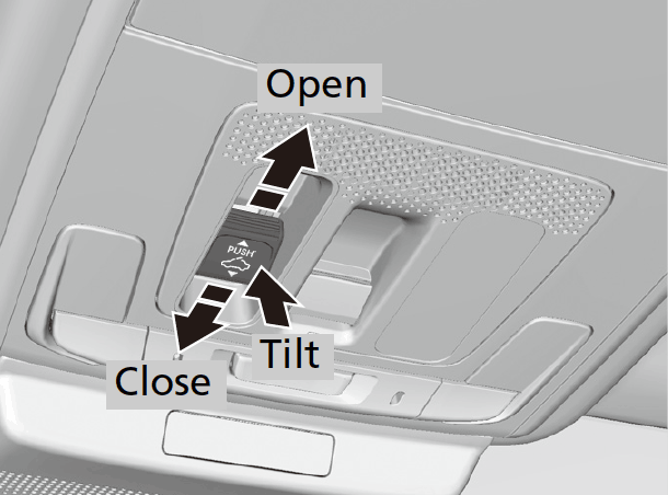 To close: Push the switch forward lightly, and hold it until the desired position is reached.Tilting the moonroof up