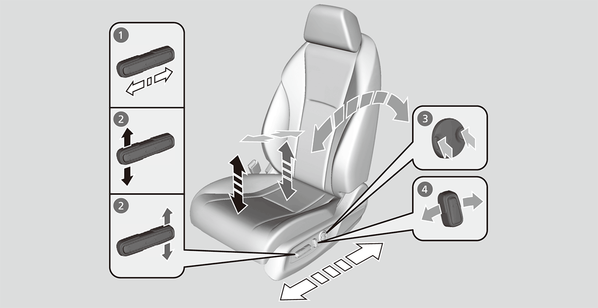Press the front or rear switch to adjust the entire lumbar support. - Seat-back Angle Adjustment