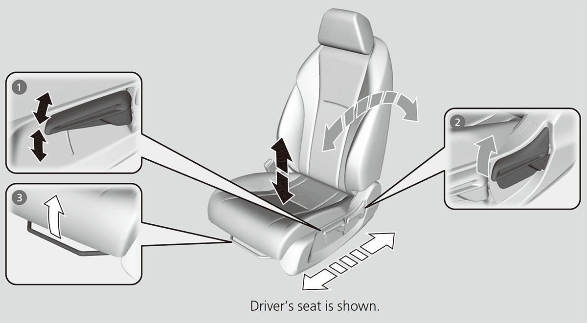 Adjust the driver’s seat as far back as possible while allowing you to maintain full control of the vehicle. You should be able to sit upright, well back in the seat and be able to adequately press the pedals without leaning forward, and grip the steering wheel comfortably. The passenger’s seat should be adjusted in a similar manner so that it is as far back from the front airbag in the dashboard as possible.