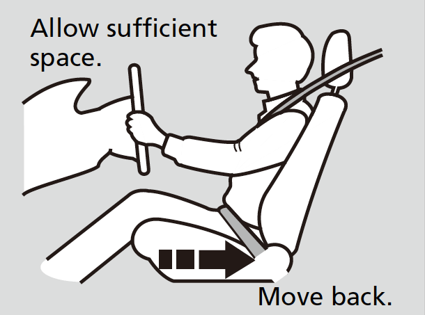 Adjust the driver’s seat-back to a comfortable, upright position, leaving ample space between your chest and the airbag cover in the center of the steering wheel.