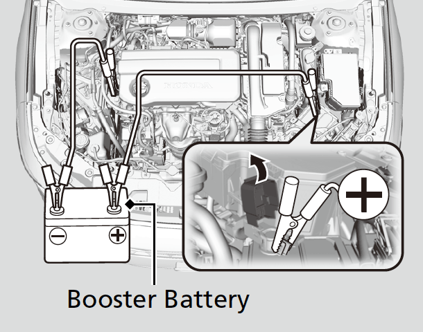 Securely attach the jumper cables clips so that they do not come off when the engine vibrates. Be careful not to tangle the jumper cables or allow the cable ends to touch each other while attaching or detaching the jumper cables.12-volt battery performance degrades in cold conditions and may prevent the engine from starting.The Vehicle Stability AssistTM (VSA®) system, Adaptive Cruise Control (ACC) with Low Speed Follow, safety support, low tire pressure/TPMS*, and parking brake and brake system (amber) indicators may come on in amber along with a message in the driver information interface when you set the power mode to ON after reconnecting the 12-volt battery.