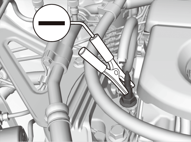 - Connect the other end of the second jumper cable to the stud bolt as shown. Do not connect this jumper cable to any other part.