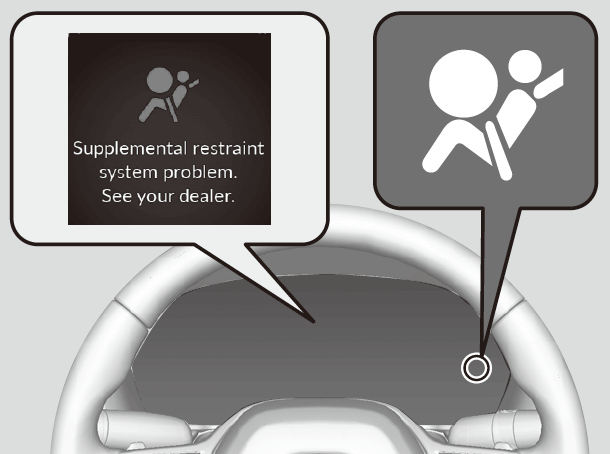 If a problem occurs in the airbag system, the SRS indicator will come on and a message appears on the driver information interface.