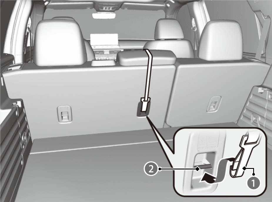 - Lower the center head restraint to its lowest position, then route the tether strap over the top of the head restraint.