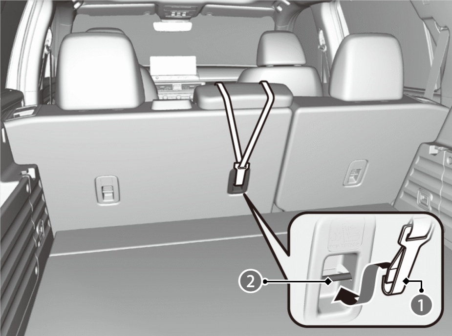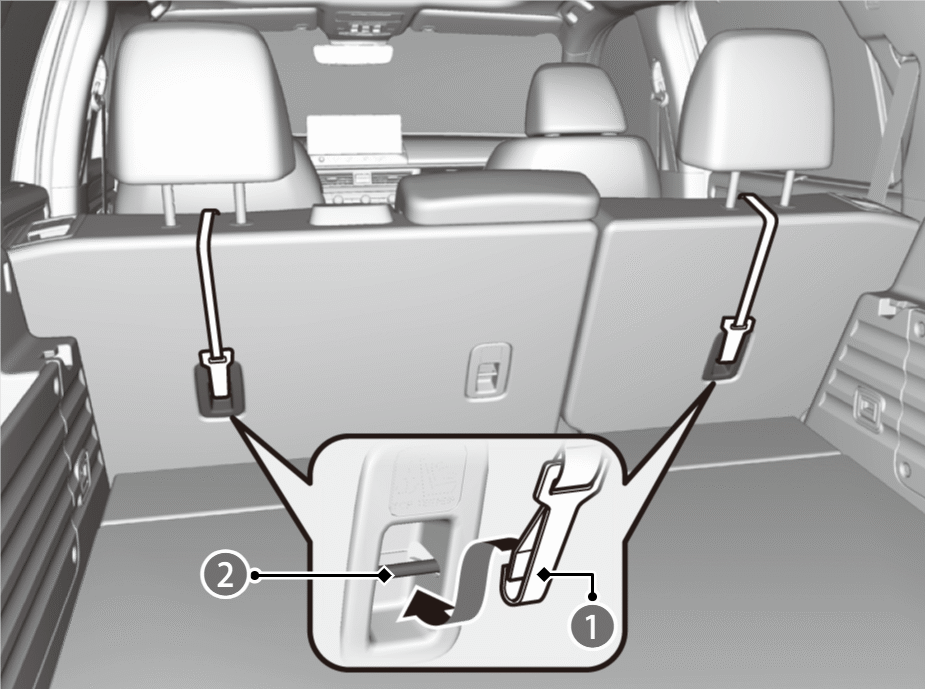 - Raise the outer head restraint to its highest position, then route the tether strap as shown in the image.