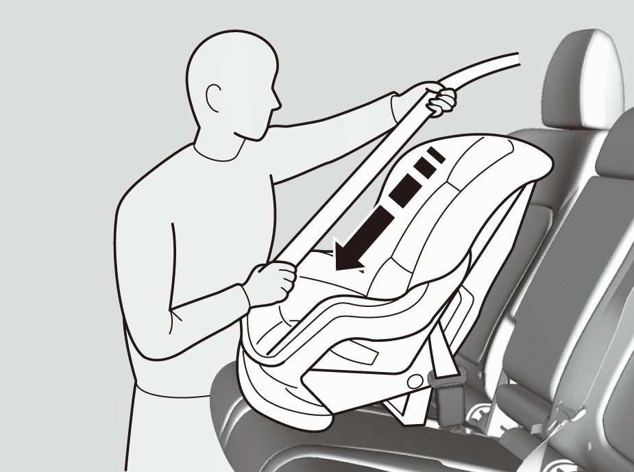 - Push the child seat firmly into the vehicle seat while tightening the vehicle seat belt to remove excess slack.