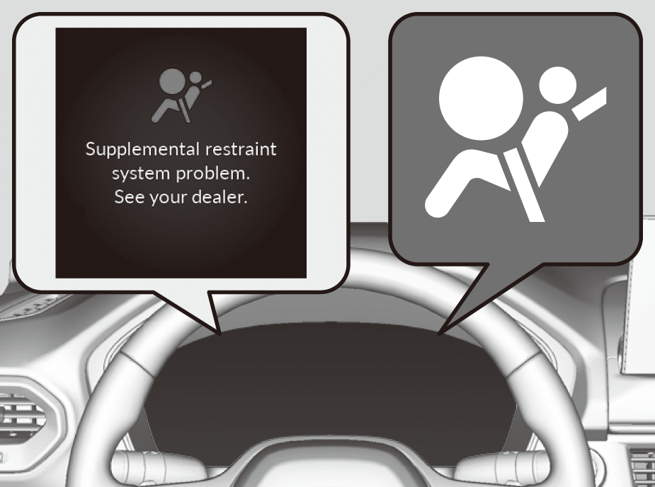 If a problem occurs in the airbag system, the SRS indicator will come on and a message appears on the driver information interface.