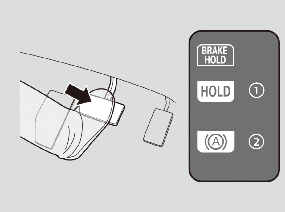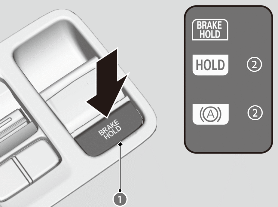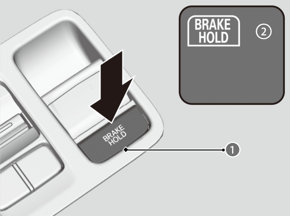 Keeps the brake applied after releasing the brake pedal until the accelerator pedal is pressed. You can use this system while the vehicle is temporarily stopped, like at traffic lights and in heavy traffic.