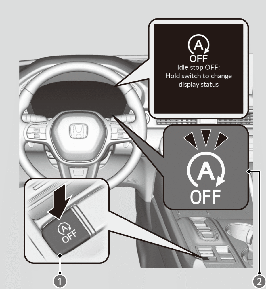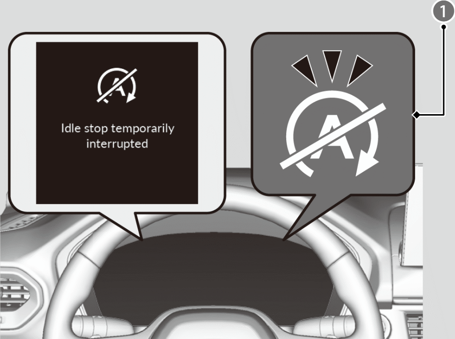 - Auto Idle Stop system will stop, the Auto Idle Stop OFF indicator (