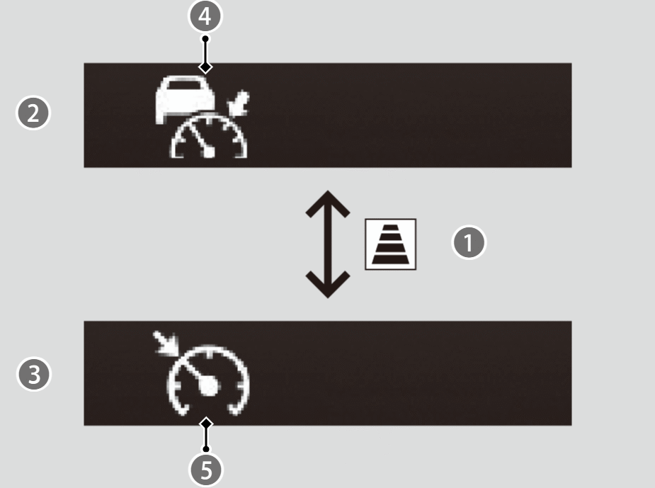 You can activate cruise control with the prior set speed displayed on the gauge (in gray) and by pressing the RES/+/SET/− switch up while driving at 20 mph (30 km/h) or above.