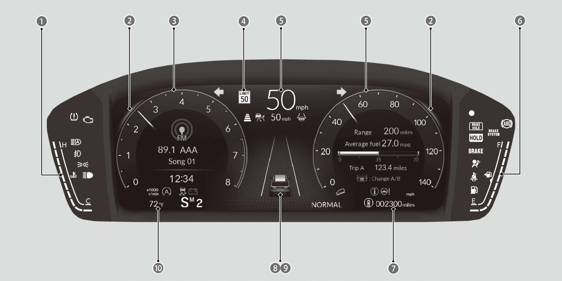 - If you change the unit from miles and mph to km and km/h, the current vehicle speed in mph appears next to the digital speedometer.