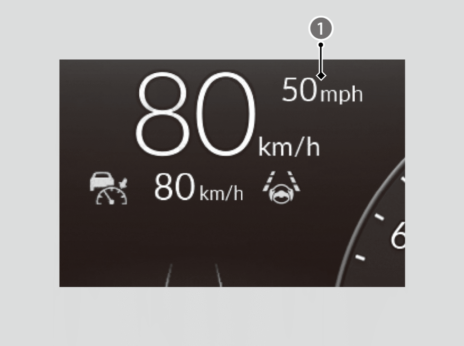 - When you set speed for ACC with Low Speed Follow or cruise control, a set speed mark will be displayed on the speedometer.
