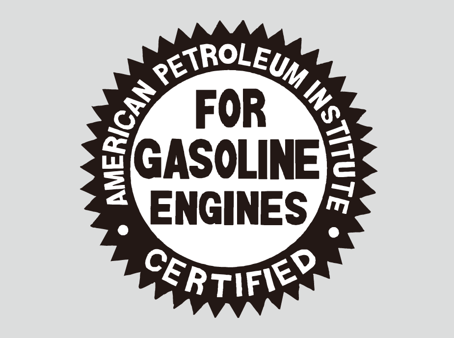 The seal shown left indicates the oil is energy conserving and that it meets the American Petroleum Institute’s latest requirements.