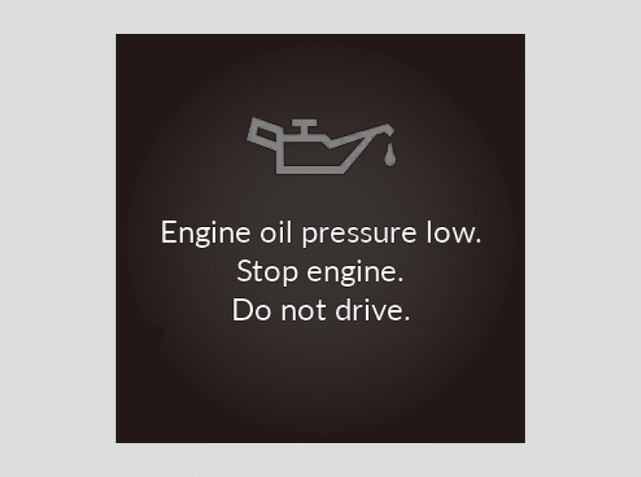 - The warning does not disappear within 10 seconds: Immediately stop the engine and contact a dealer for repairs.