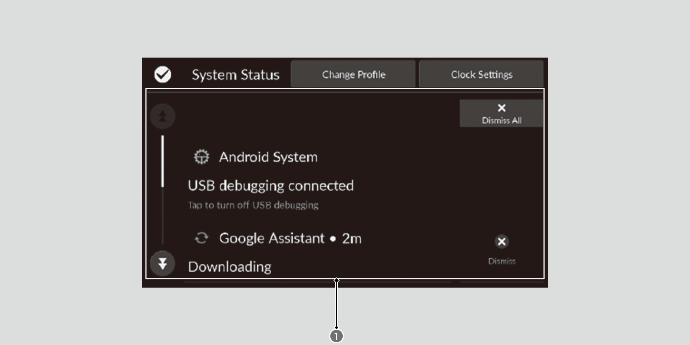 Displays information about your vehicle and connected devices. You can select the status bar to view more details in the status area.
