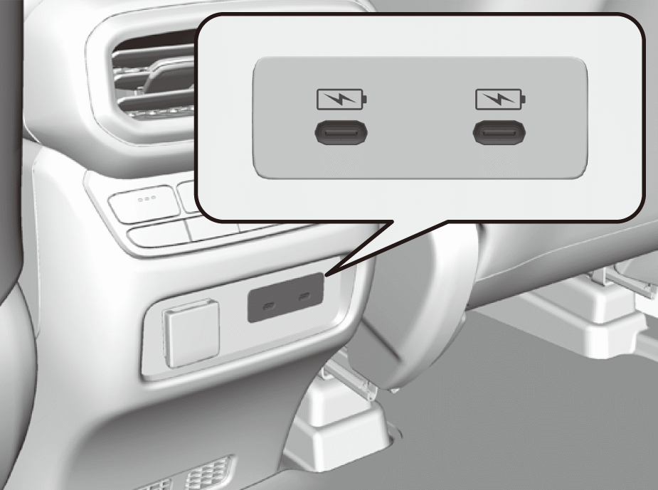 The USB port is for charging devices, playing audio files, and connecting compatible phones with Apple CarPlay or Android Auto.