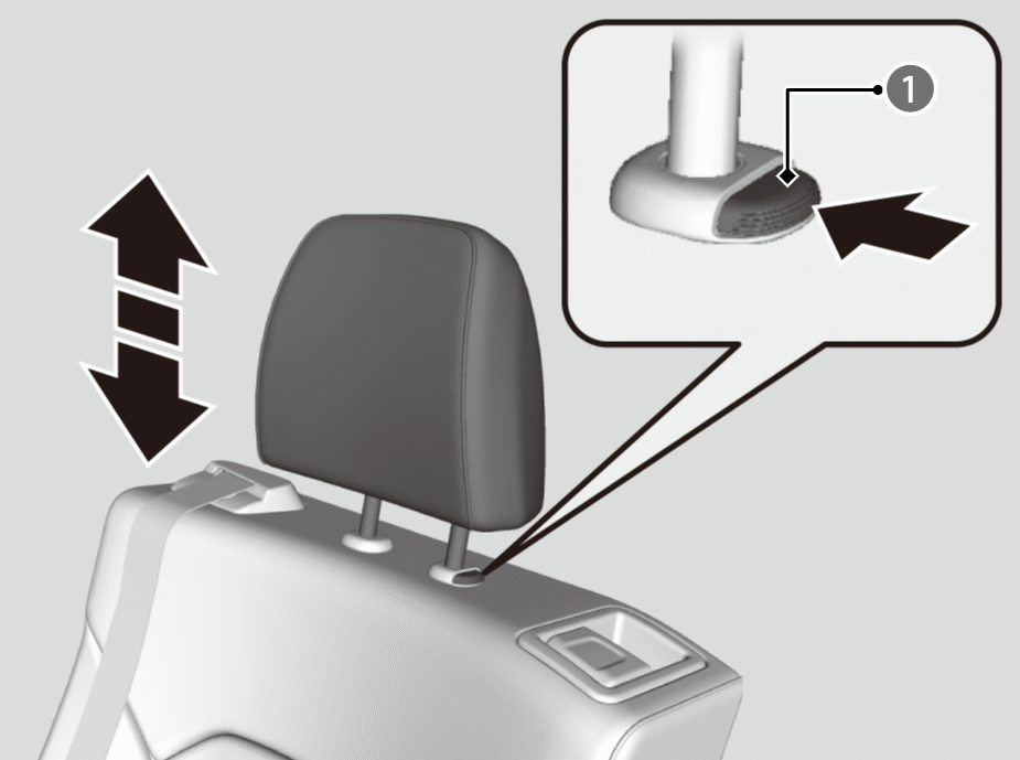 A passenger sitting in the rear seat should adjust the height of their head restraint to an appropriate position before the vehicle begins moving.