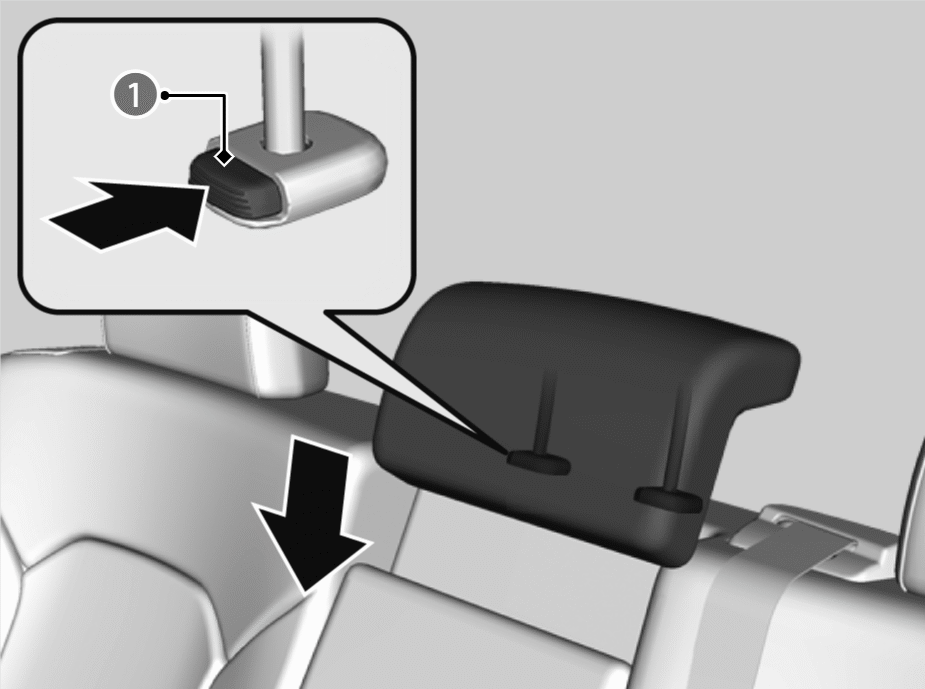 Insert the legs back in place, then adjust the head restraint to an appropriate height while pressing the release button.