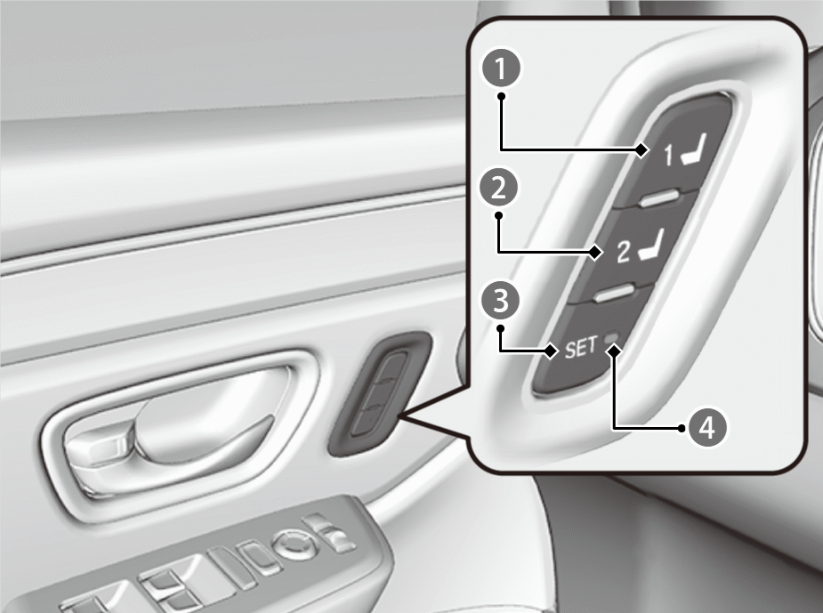 - Set the power mode to ON. Adjust the driver’s seat and door mirror to the desired position.