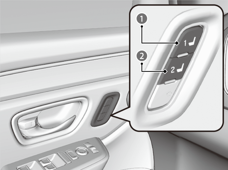 You can store two driver’s seat and outside mirrors position (except for power lumbar) with the driving position memory system.