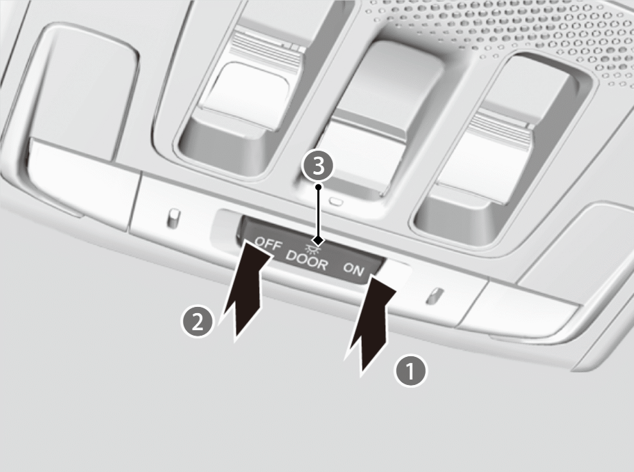 - In the door activated position, the interior lights turn off about 30 seconds after the doors are closed. When you unlock the driver’s door but do not open it, the lights turn off after about 30 seconds.