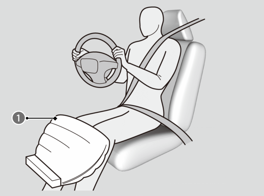 The knee SRS airbags inflate in a moderate-to-severe frontal collision to help keep the driver and/or front passenger in the proper position and to help maximize the benefit provided by the vehicle’s other safety features.