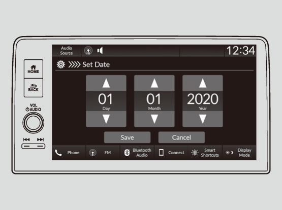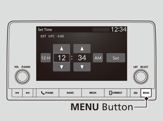 The clock is automatically updated through the audio system.Models with 7-in. Color TouchscreenYou can also select and enter with the selector knob instead of the touch panel.Models with 9-in. Color TouchscreenYou can also adjust the clock by touching the clock displayed on the header area of the audio/information screen, Clock displayed on the home screen, or