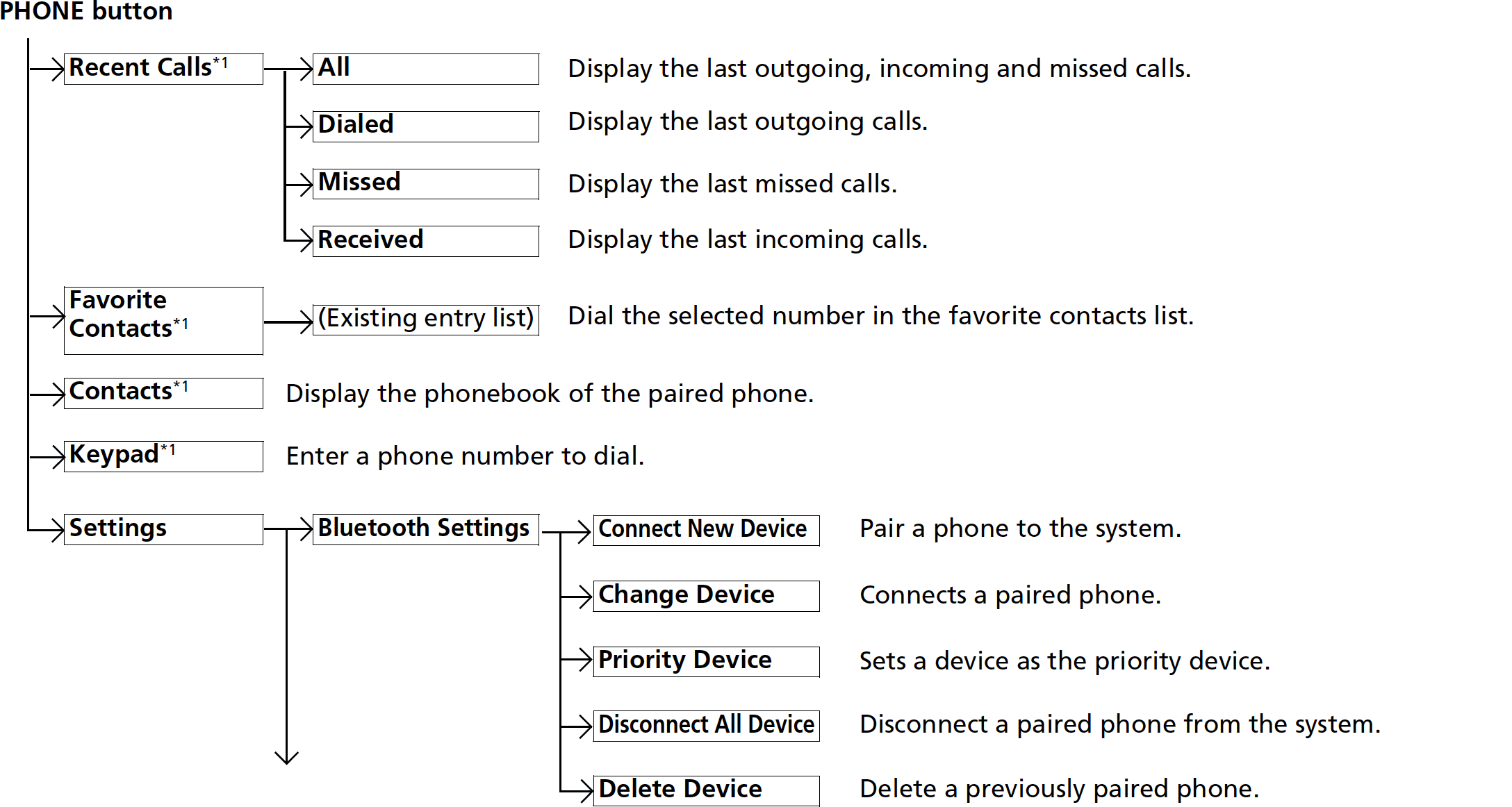 Phone settings, paired phones, all favorite contacts entries, all call history data, and all imported phonebook data are erased.