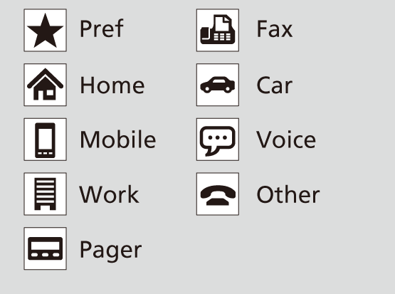 When you select a person from the list in the cellular phonebook, you can see up to five category icons. The icons indicate what types of numbers are stored for that name.