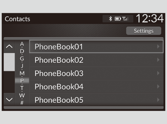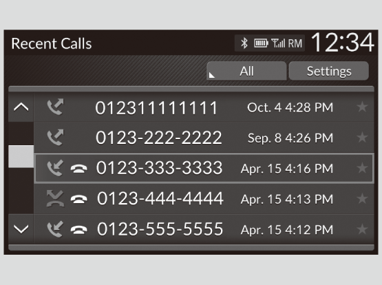 The call history appears only when a phone is connected to HFL, and displays the last 20 dialed, received, or missed calls.