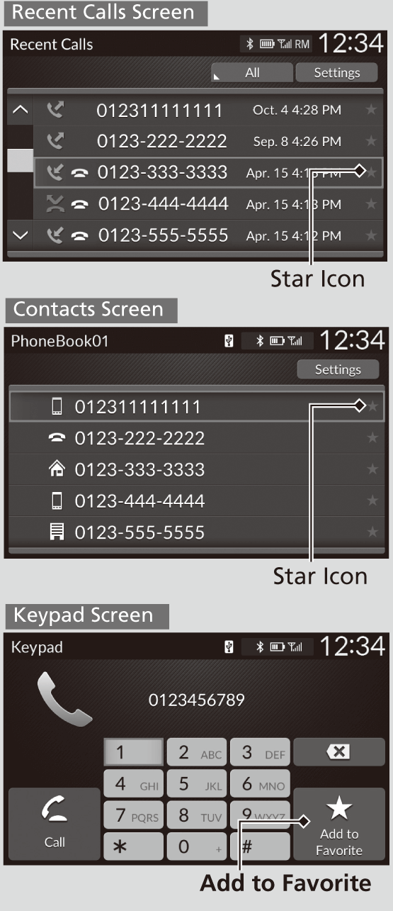 On the Recent Calls or Contacts screen- Select the star icon.
