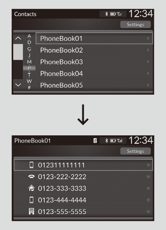 When your phone is paired, the contents of its phonebook and call history are automatically imported to HFL.
