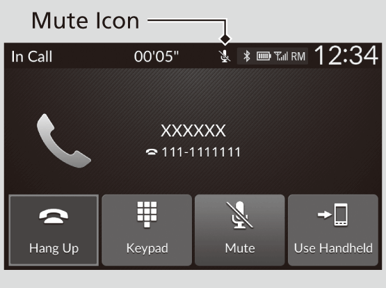 - The mute icon appears when Mute is selected. Select Mute again to turn it off.