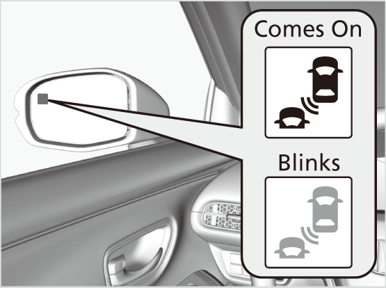 When the system detects vehicles approaching from behind in adjacent lanes, the appropriate indicator comes on, providing assistance when you change lanes.