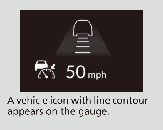 When ACC with Low Speed Follow starts operating, the vehicle icon, interval bars, and set speed appear on the gauge.