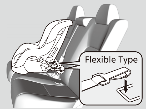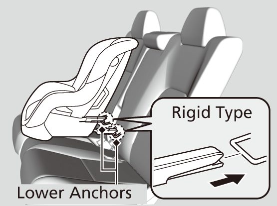 A LATCH-compatible child seat can be installed in either of the two outer rear seats. A child seat is attached to the lower anchors with either the rigid or flexible type of connectors.
