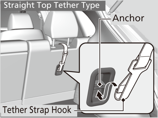 - Raise the head restraint to its highest position, then route the tether strap between the head restraint legs, and secure the tether strap hook to the anchor.