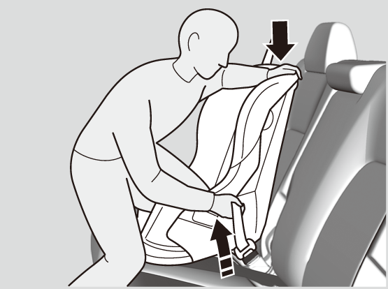 When properly installed, a rear-facing child seat may prevent the driver or a front passenger from moving their seat all the way back, or from locking their seat-back in the desired position. Make sure that there is no contact between the child seat and the seat in front of it.