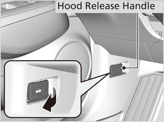 - Pull the hood release handle under the driver’s side lower corner of the dashboard.