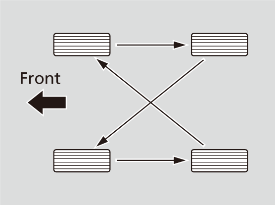 Rotate the tires as shown here.