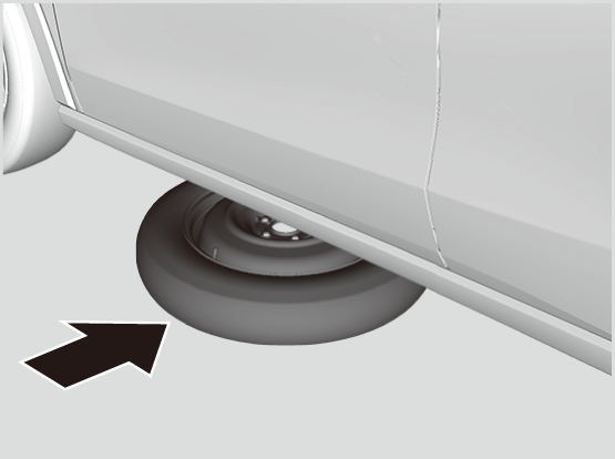 - Place the compact spare tire (wheel side up) under the vehicle body, near the tire that needs to be replaced.
