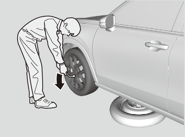 - Loosen each wheel nut about one turn using the wheel nut wrench.