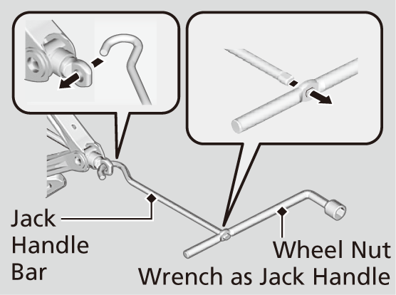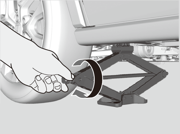 - Raise the vehicle, using the jack handle bar and the jack handle, until the tire is off the ground.