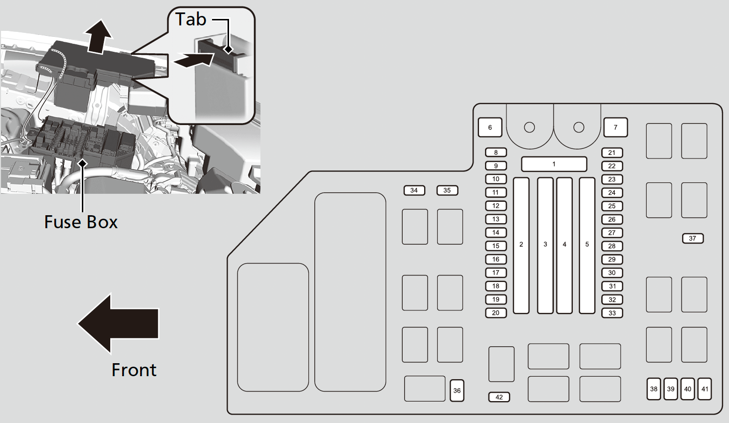 - Remove the fuse box cover.