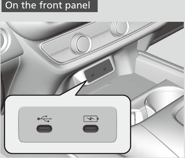USB charging port on the front panel (
