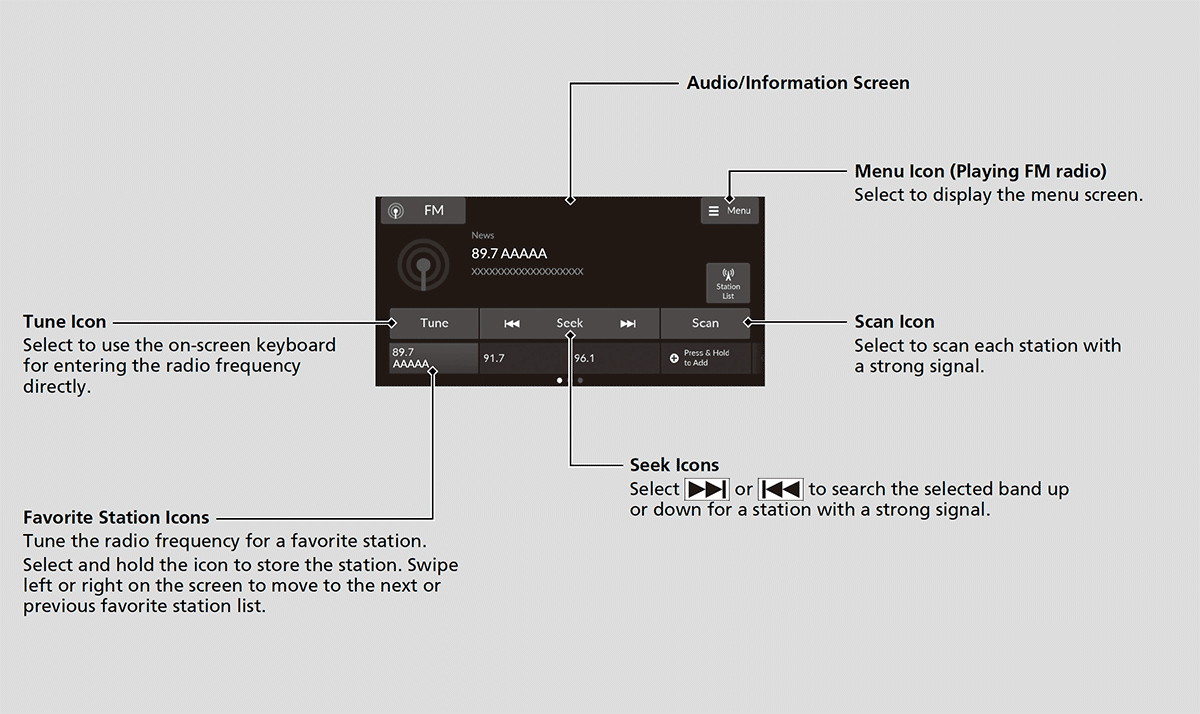 - Select and hold the favorite station icon to store that station.