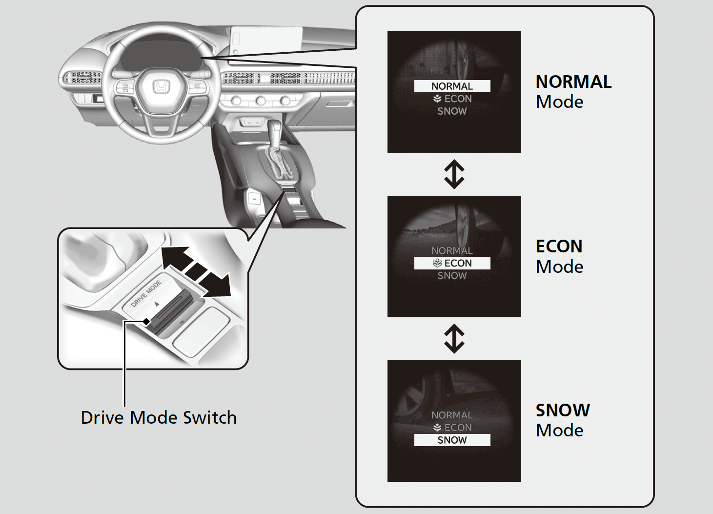 Press the drive mode switch to select the appropriate mode. The mode you select appears on the driver information interface.