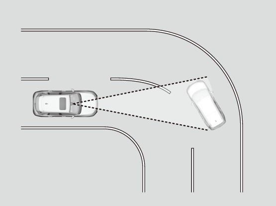 - A vehicle approaches from the side as it is driving through a curve.