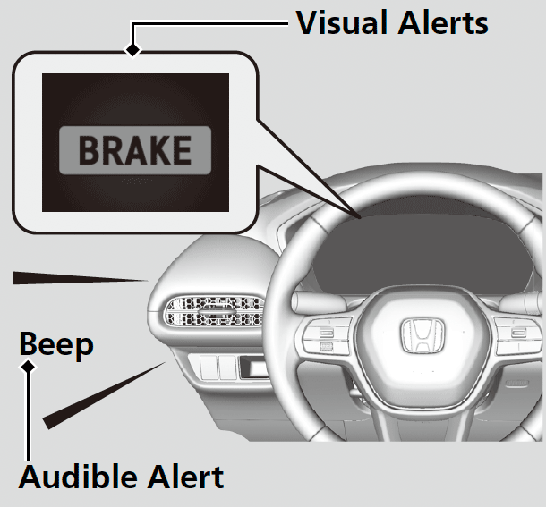 The visual alert flashes. If the distance between your vehicle and the vehicle in front of you continues to decrease, the audible alert sounds in addition to the visual alert flashing.